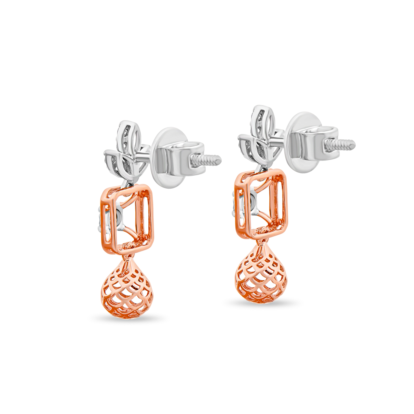 Delicate squarish Diamond Earring in 14K Dual Tone Gold