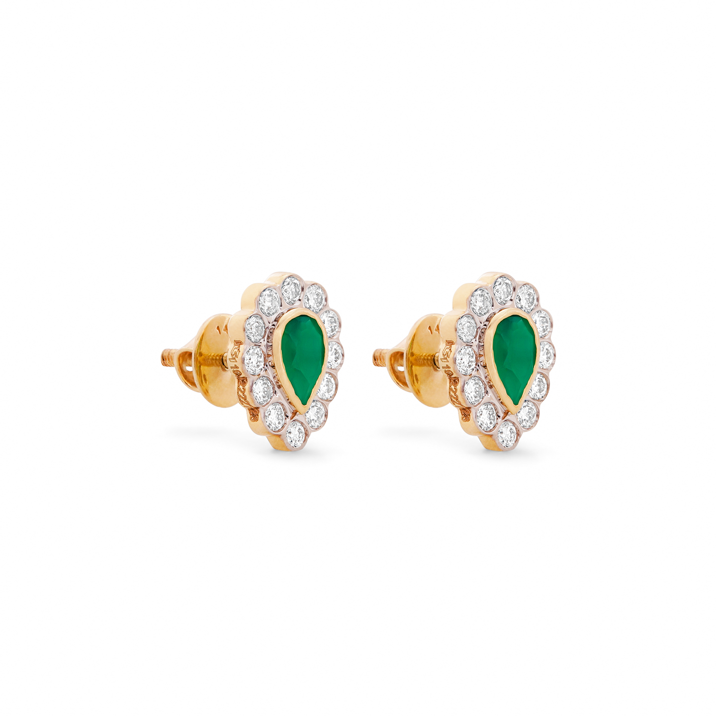 Unearth timeless allure with our Earthy Emerald and Diamond Stud in 14K Yellow Gold. This absolute must-have jewel adds an eye-catching fusion of nature's elegance and radiant diamonds to your collection.