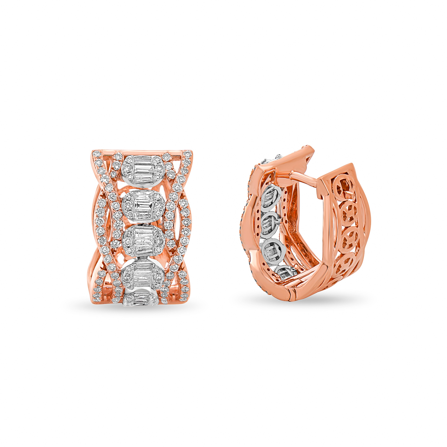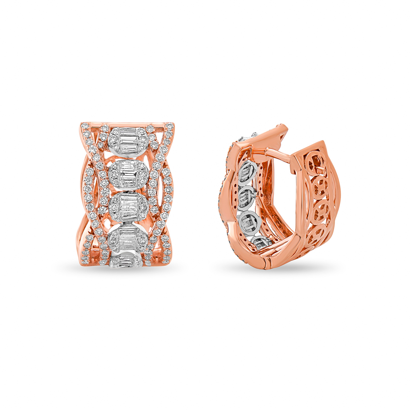 "Experience regal radiance with our 14K Rose Gold Diamond Studs. Intricately designed for special occasions, these earrings exude timeless elegance—a perfect anniversary gift that captures the essence of enduring love.