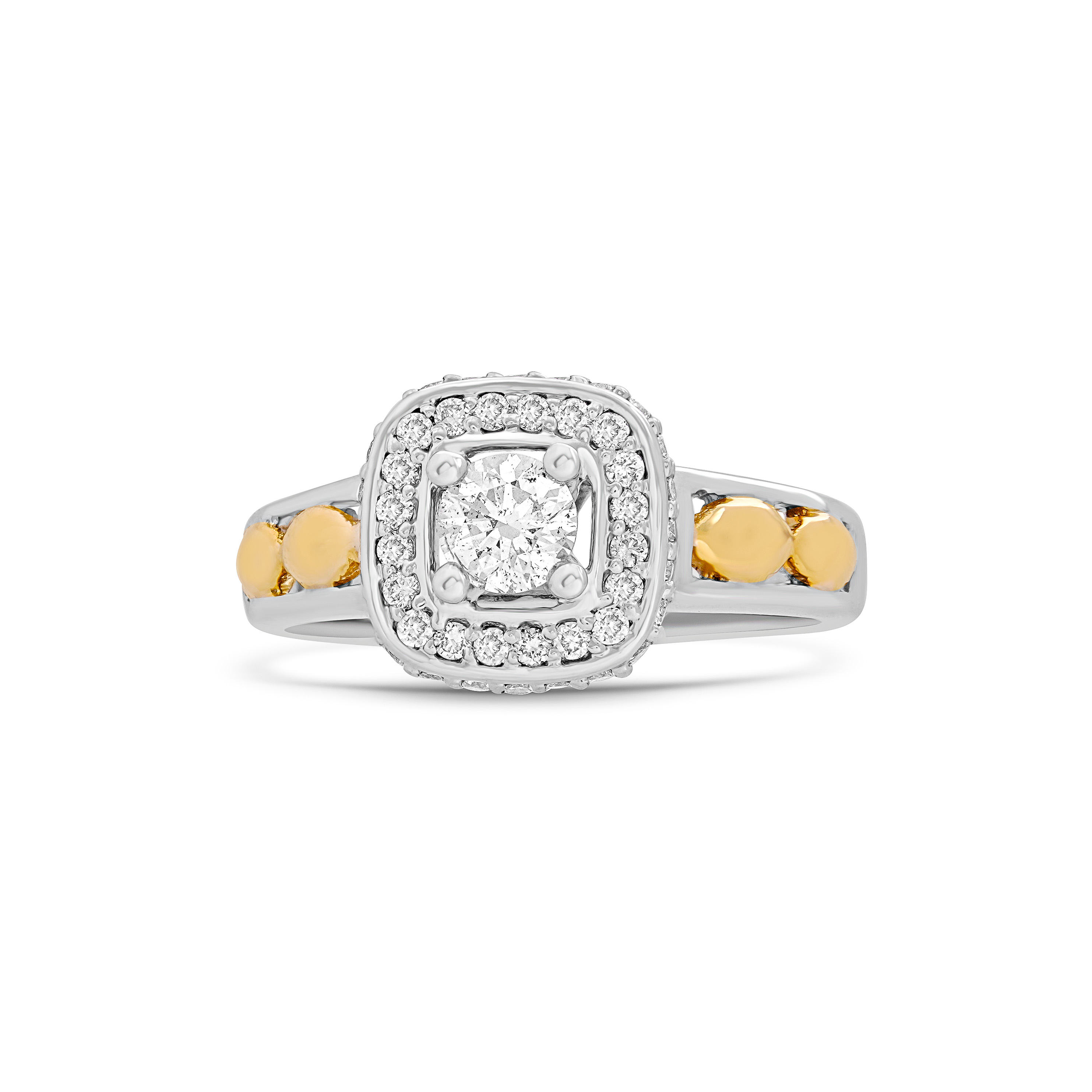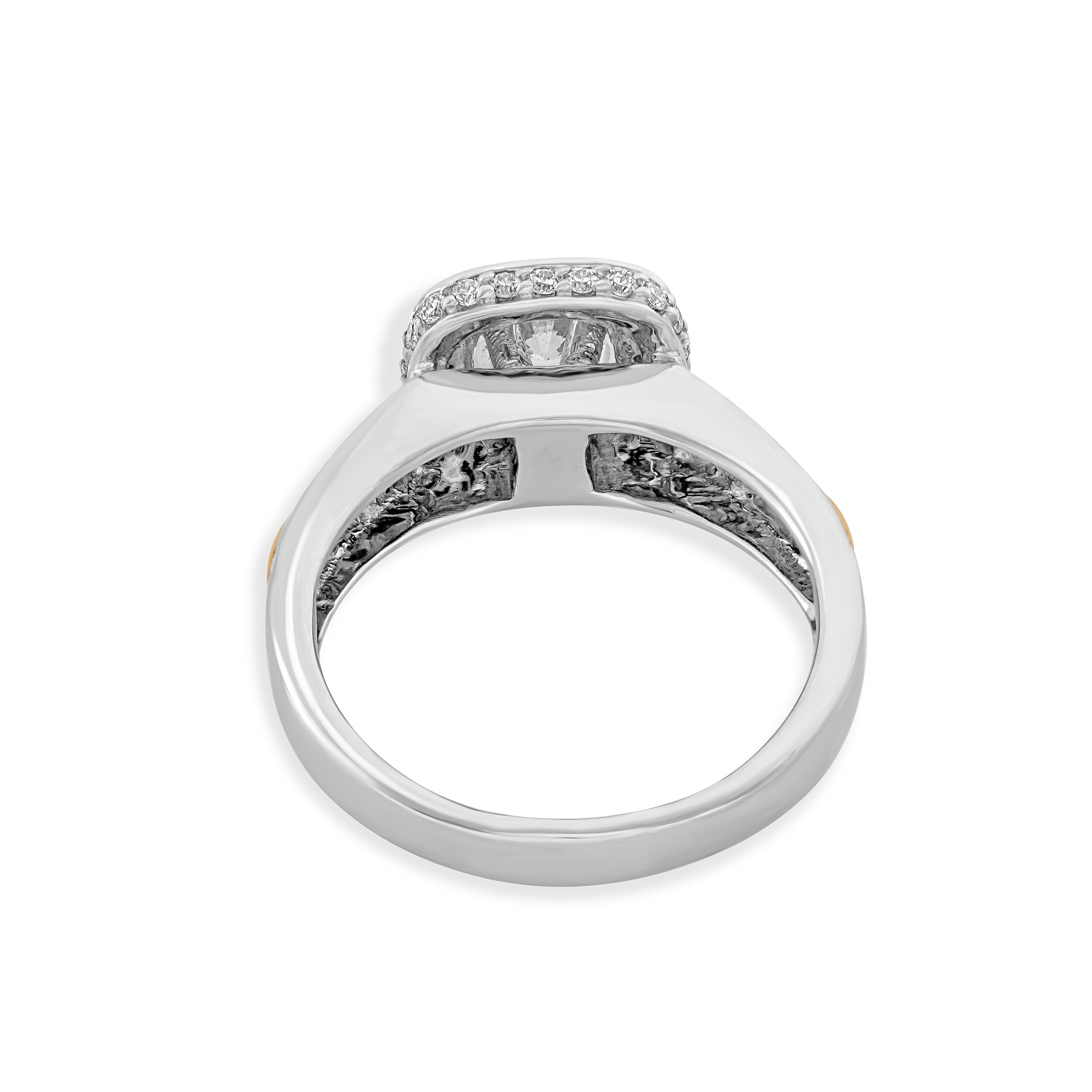 Crafted from 14 KT two-tone white gold and yellow gold, this captivating ring boosts a harmonious blend of colours. Embedded with dazzling diamonds, it radiates brilliance and grace.