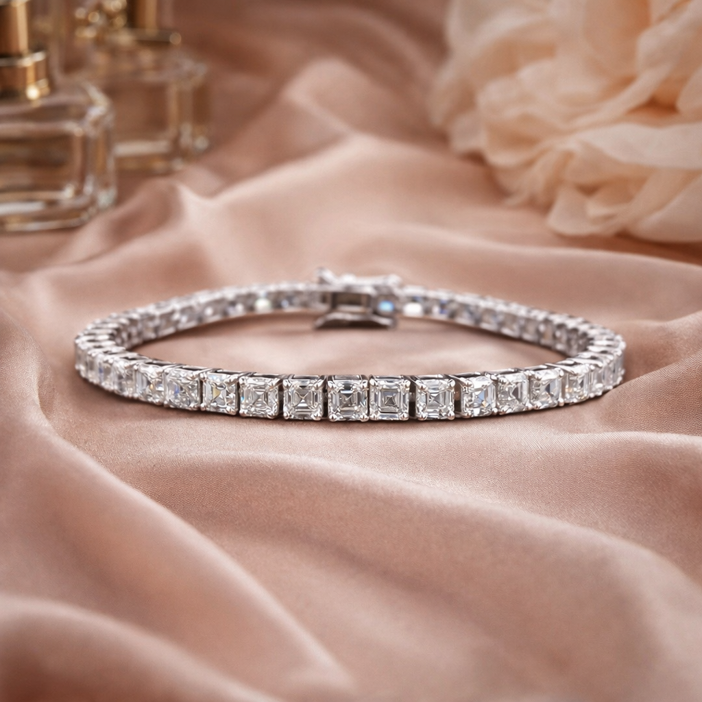 - Lab-Grown Diamond Asscher Cut Tennis Bracelet