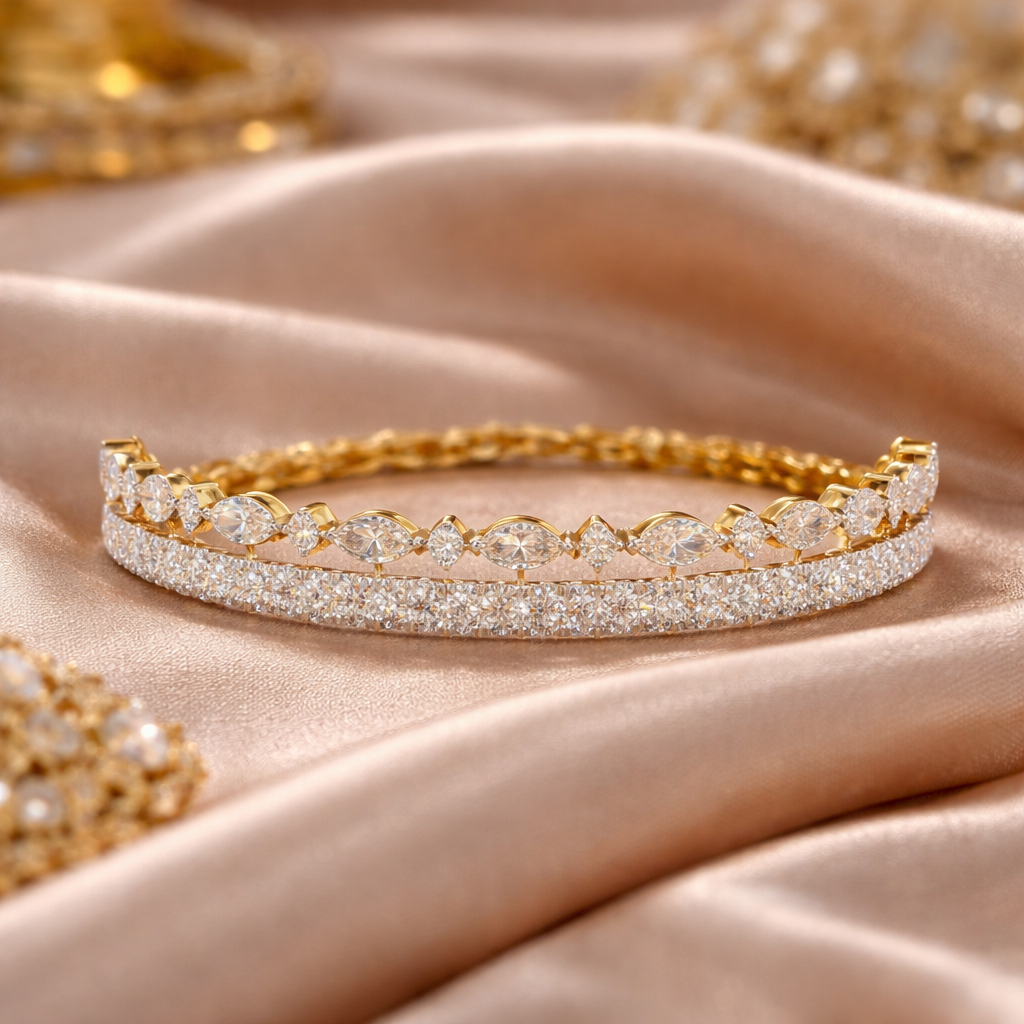 A timeless bracelet featuring a row of round brilliant-cut lab-grown diamonds, each elegantly secured within refined circular bezel-style frames. The design is enhanced with delicate pavé-set diamonds along the borders, creating continuous brilliance across the wrist.