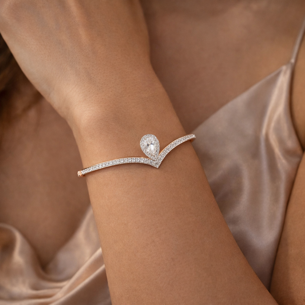 - Lab-Grown Diamond Pear Cut Halo V-Shape Bracelet