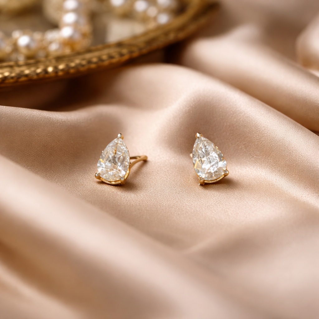 Simple yet elegant, these stud earrings feature brilliant pear-cut lab-grown diamonds set in a minimal solitaire design. The sleek setting highlights the natural brilliance and elongated silhouette of the stones, offering a refined and modern look.