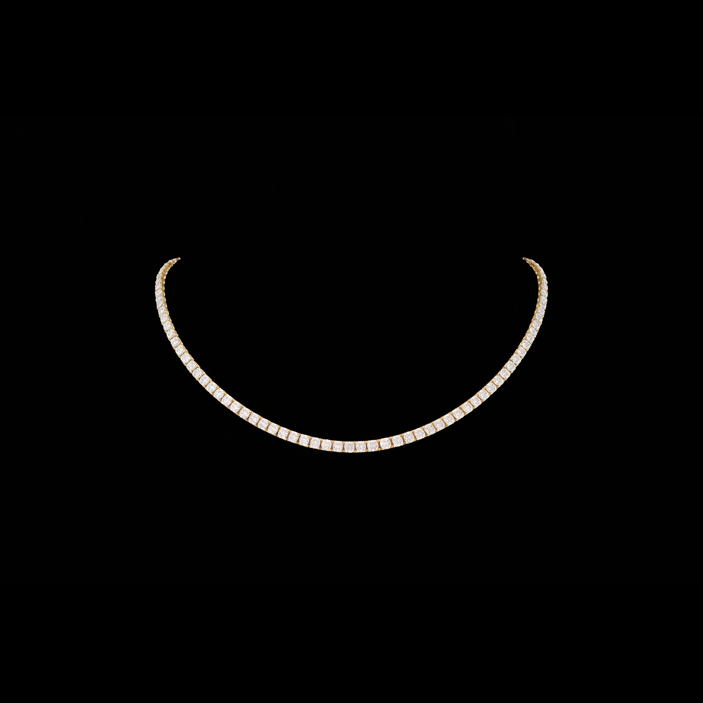 A timeless tennis necklace featuring a seamless row of brilliant round cut lab-grown diamonds set in a sleek, symmetrical design. The refined setting enhances continuous sparkle across the neckline, offering effortless elegance and versatile sophistication—perfect for both everyday luxury and special occasions.