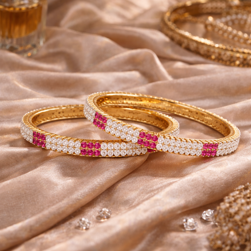 - Lab-Grown Diamond & Ruby Round Brilliant Designer Bangle Pair