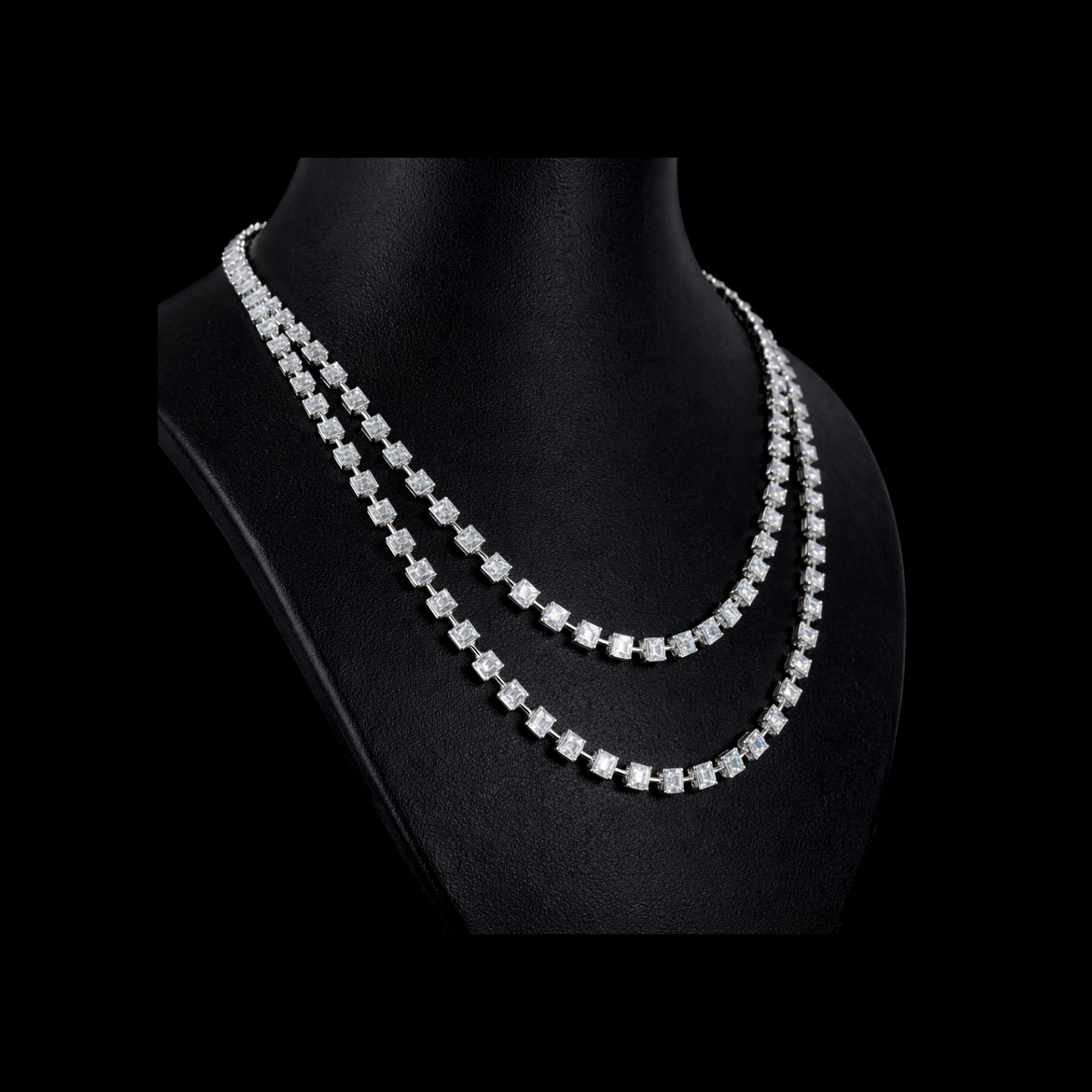 Elegant lab-grown diamond layered necklace featuring a stunning combination of princess cut and emerald cut diamond shapes. A sophisticated double-line design that adds brilliance and modern charm to weddings, parties, and luxury occasions.