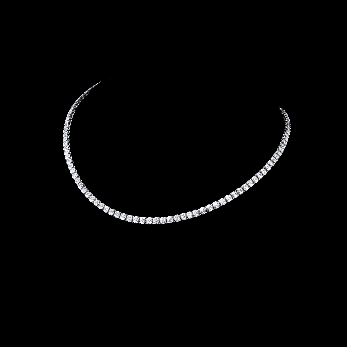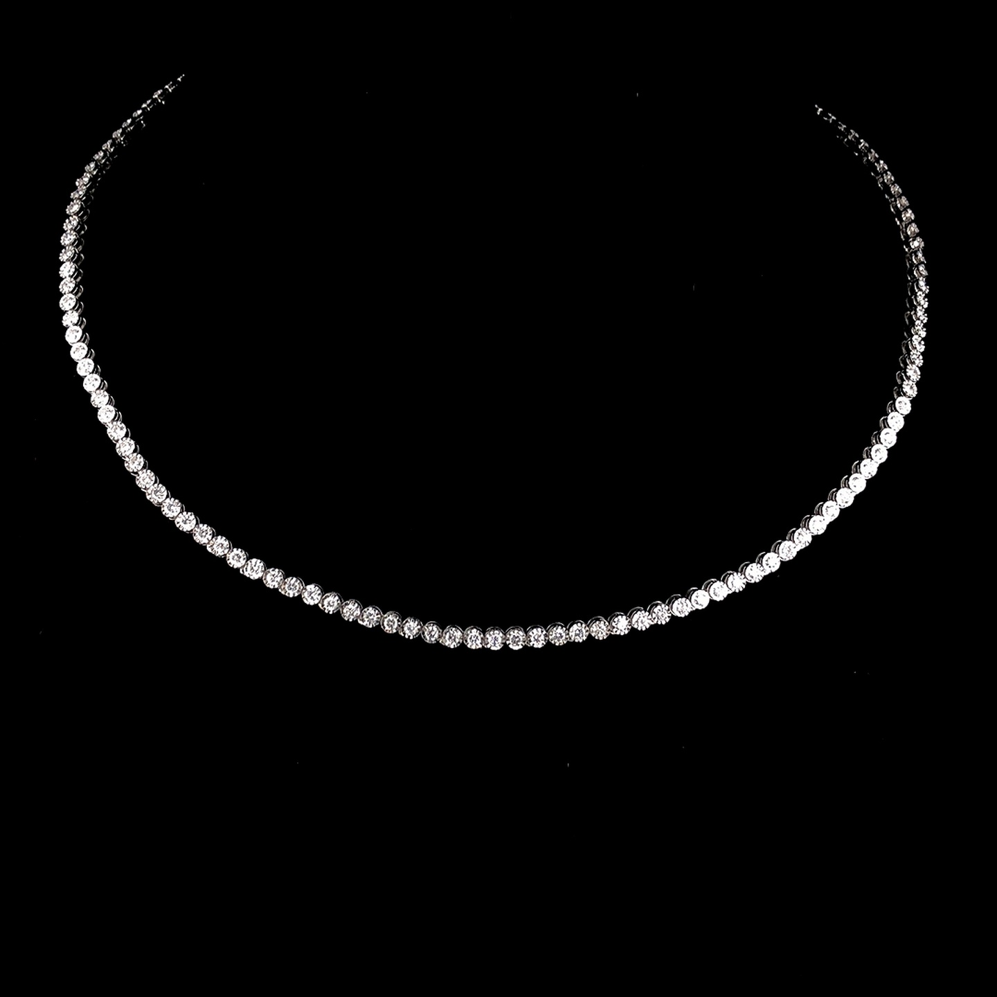 Sophisticated lab-grown diamond tennis necklace featuring brilliant round cut diamond shapes in a sleek bezel setting. A timeless and elegant design perfect for weddings, formal events, and refined everyday wear.