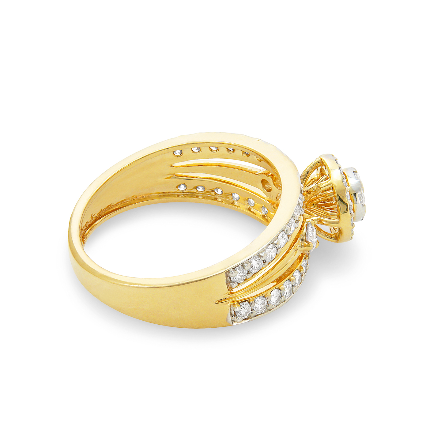 The diamonds are expertly mounted onto the gold band, creating a fascinating display of sparkle and radiance.