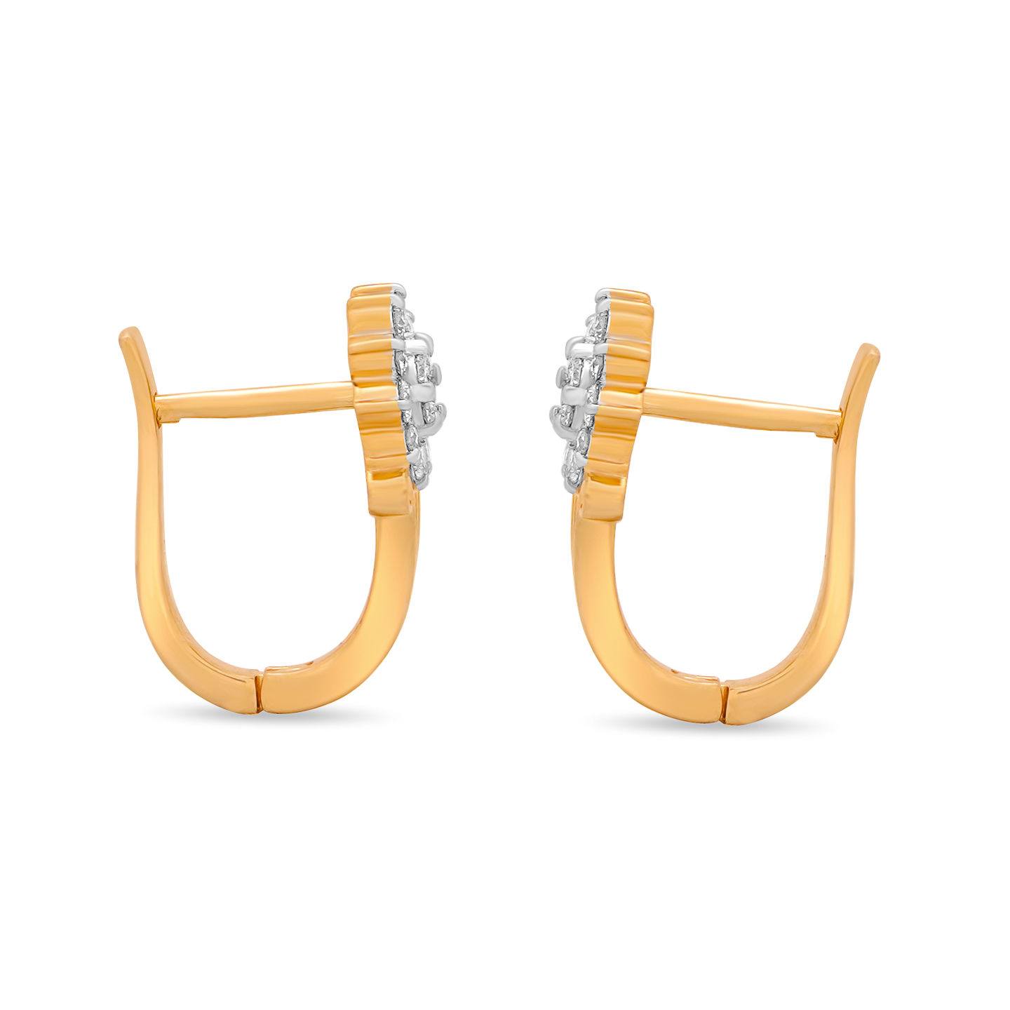 Adorn yourself daily with our Rose Design Diamond Earrings in 14K Yellow Gold. This exquisite pair, inspired by a delicate rose motif, adds a touch of elegance and sparkle to your everyday style