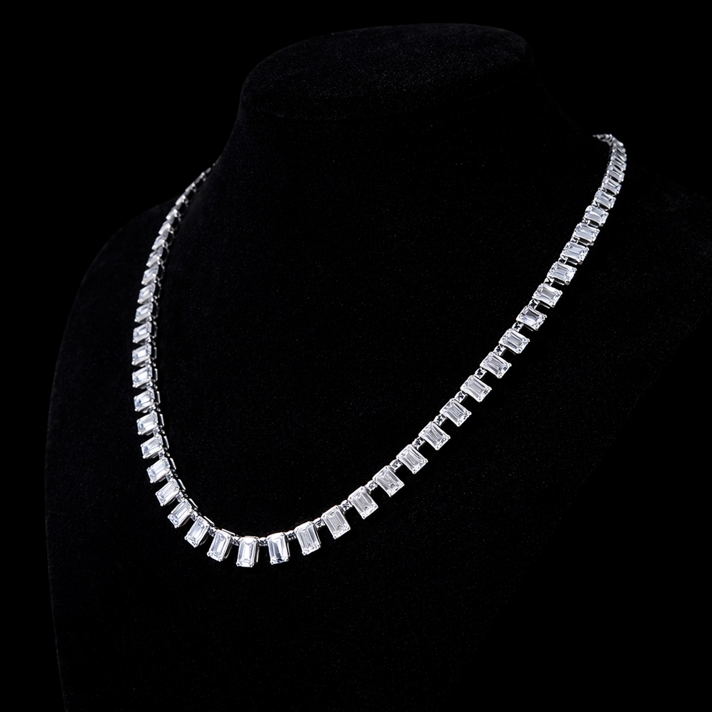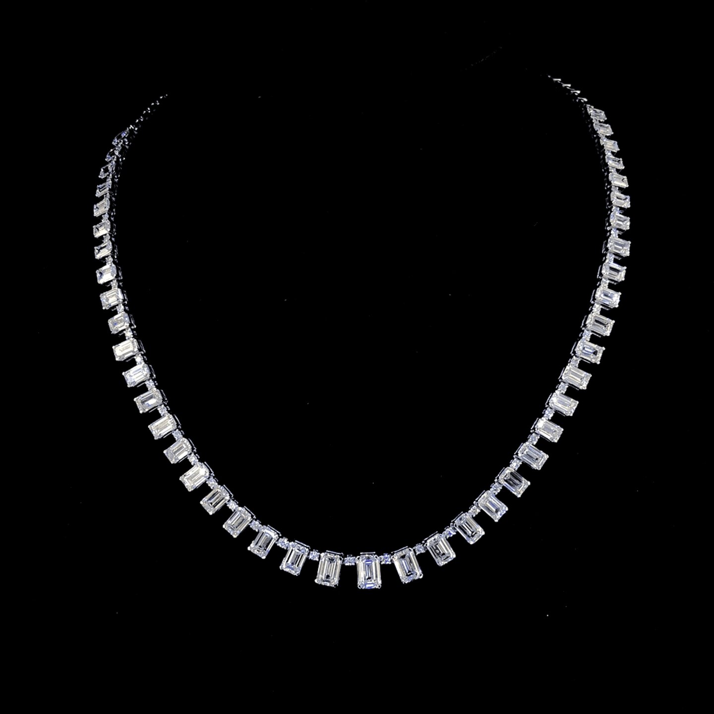 A graceful cascade of emerald-cut lab-grown diamonds, expertly crafted to reflect timeless brilliance and royal elegance. Designed to sit beautifully along the neckline, this necklace adds refined luxury to bridal looks, festive celebrations, and special evenings.