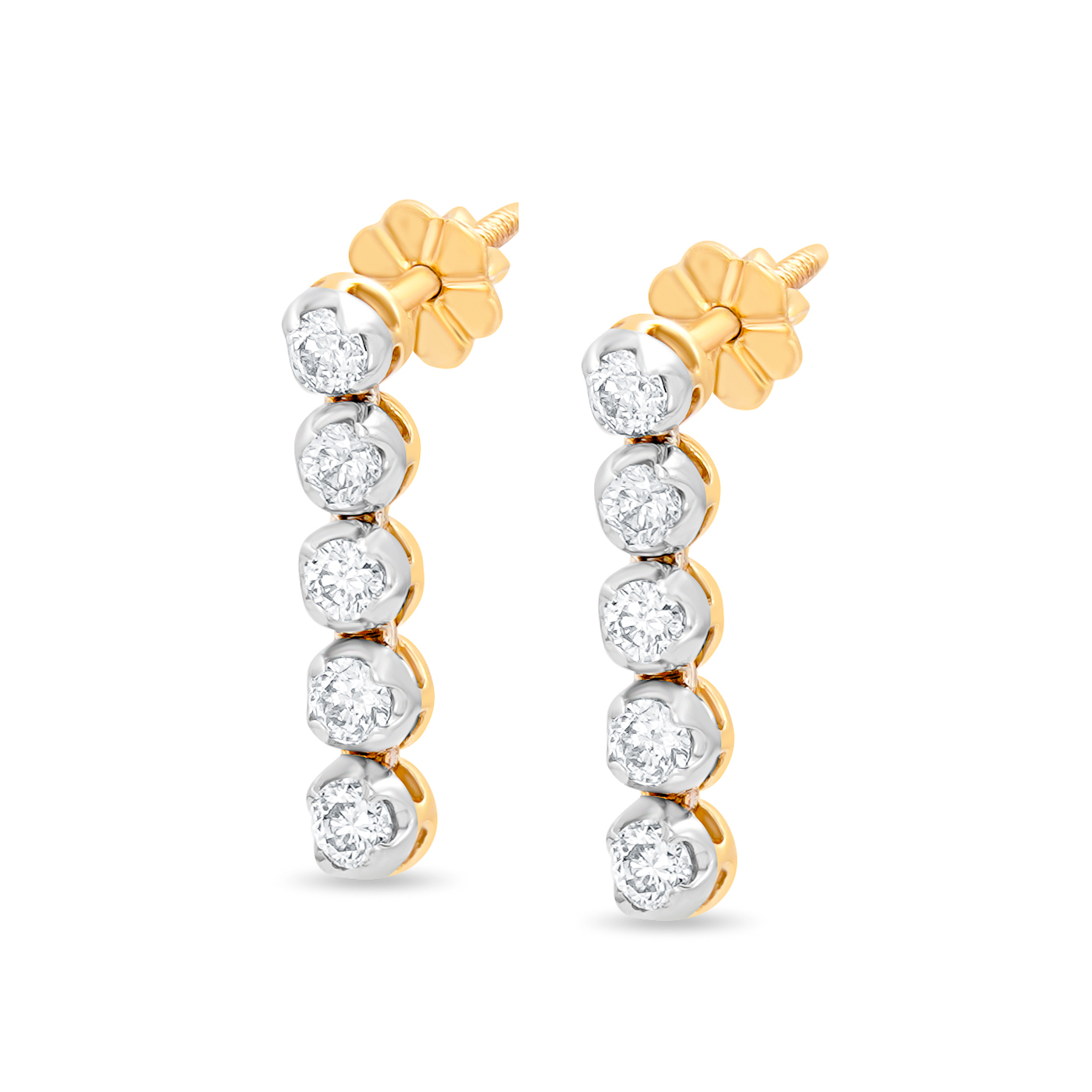 Turn heads with our stunning drop of diamonds in 14K yellow gold, perfect for stealing the spotlight at any party. This exquisite piece adds a touch of glamour and elegance to your celebratory ensemble."