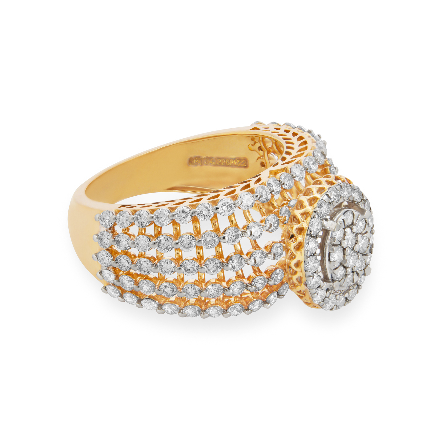 The band of the ring is crafted in gold, providing a lustrous and rich backdrop for the diamonds embedded on it.