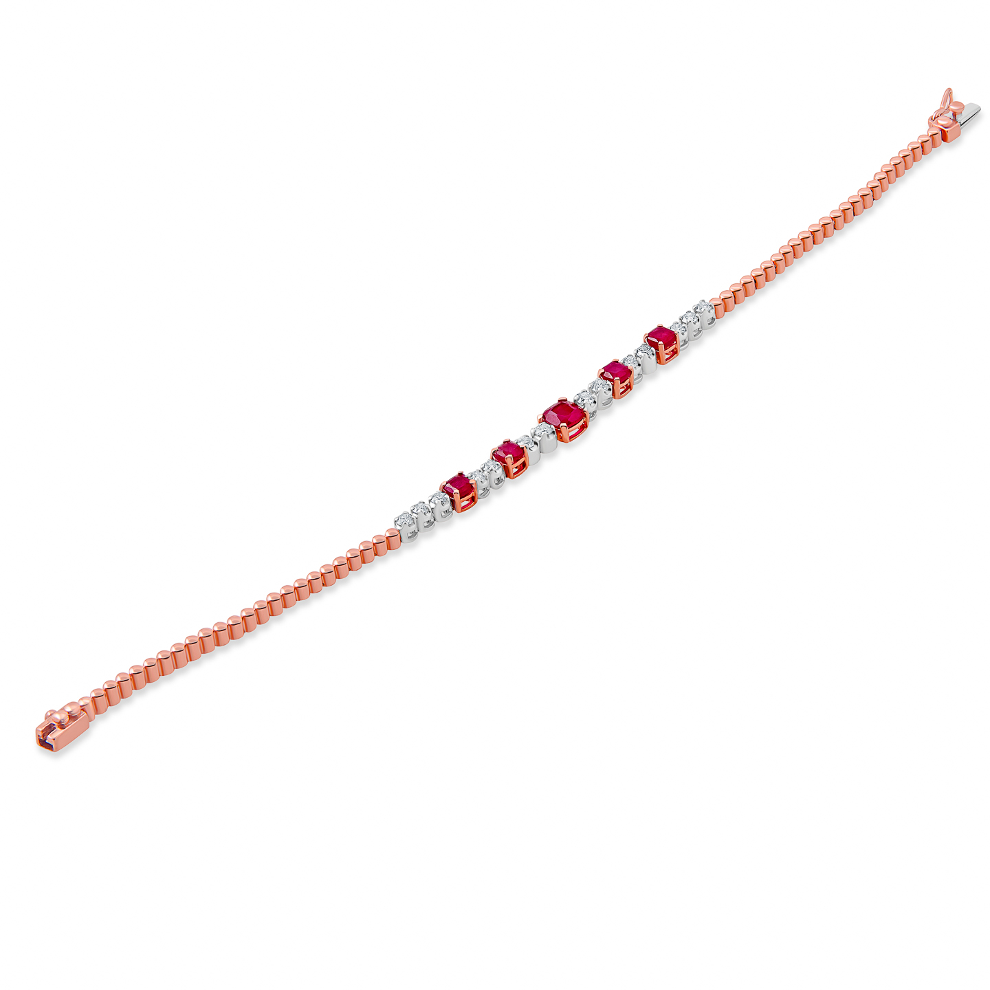 Glitzy Ruby Diamond Rose 14K Gold Bracelet