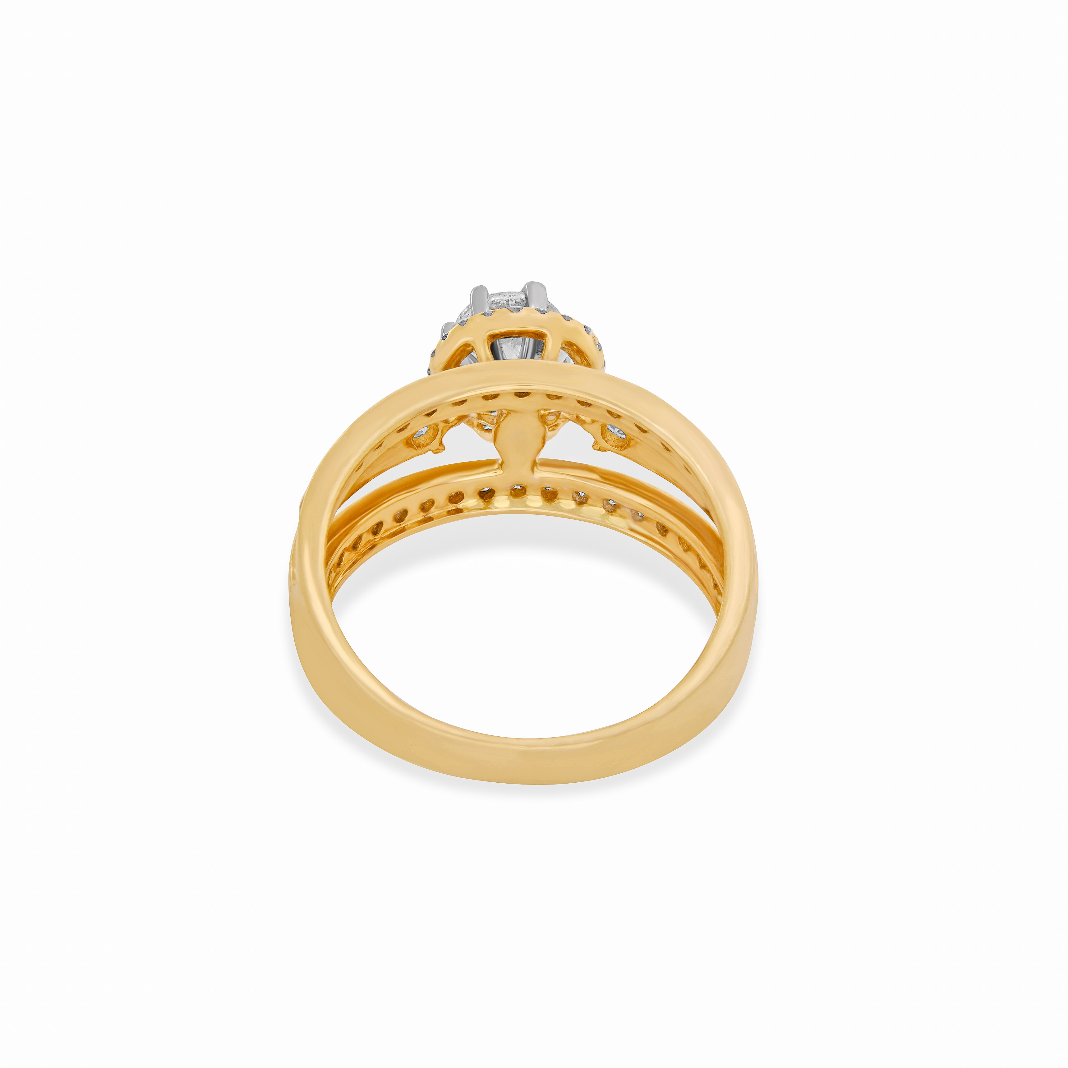 Crafted in lustrous gold, this exquisite ring features a dazzling central diamond embraced by a radiant halo of meticulously embedded microdiamonds.