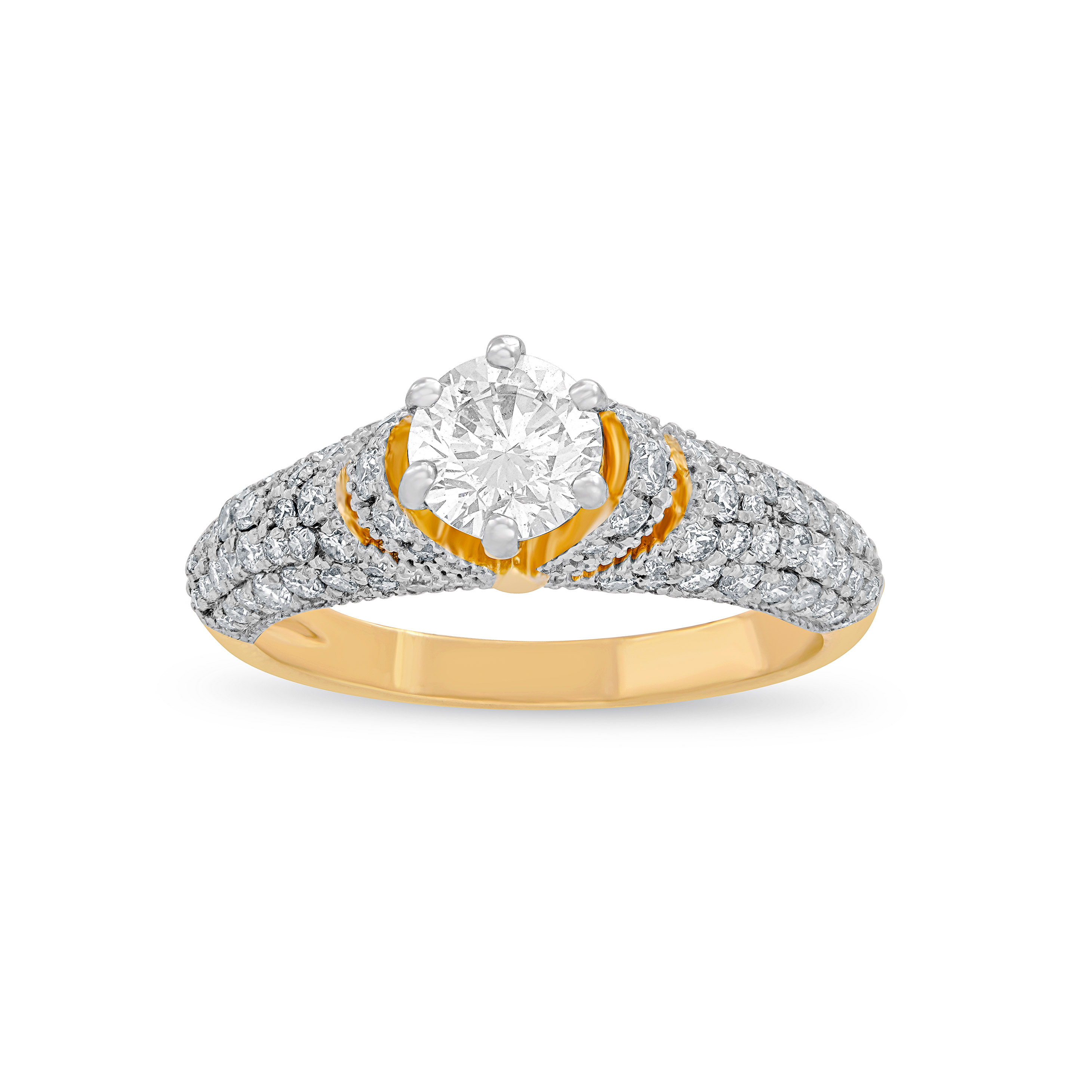 This exquisite ring features a brilliant solitaire diamond as its centrepiece, emanating unparalleled radiance. Surrounding the central diamond is a halo of delicate diamonds creating a display of brilliance and sparkle.