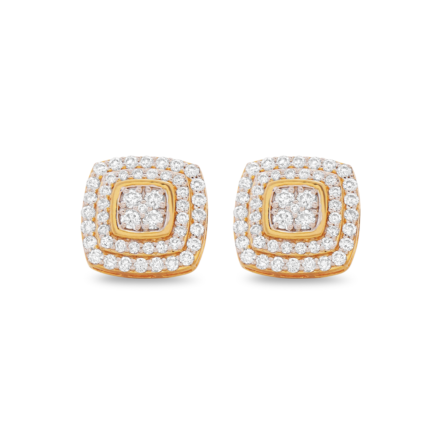 Sqaurish Diamond Stud in 14K Yellow Gold, a classic piece that exudes richness and enhances your beauty. Elevate your style with timeless elegance and radiant sophistication.